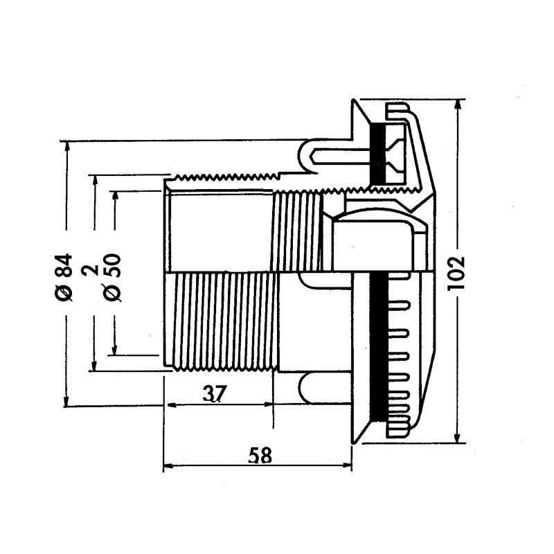 Fabricata din ABS alb. Conexiune 2"; interior D50. Debit 7 mc/h.