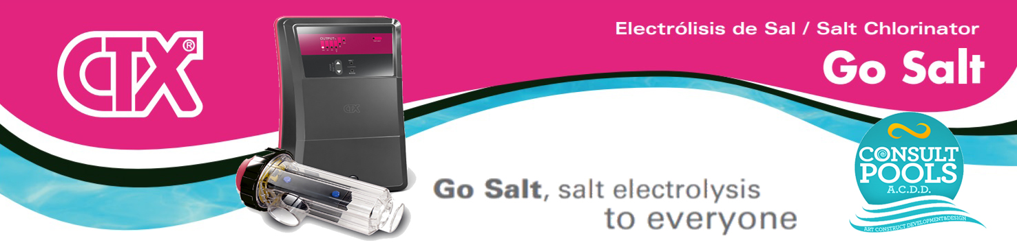 Sistemele de electroliza a sarii de la CTX Go Salt sunt aparate moderne de dezinfectie care permit un tratament usor, in conditii de siguranta,  a apei din piscina, fara efecte secundare, cum ar fi mirosul de clor sau iritatii ale pielii. In apa se dizolva sare - 4 kg/mc.