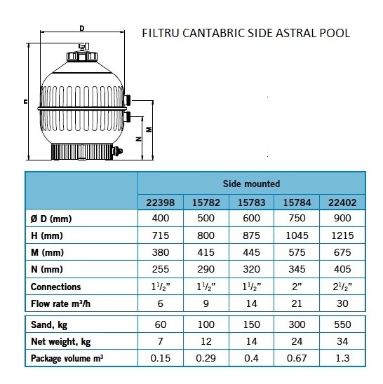 Face parte din categoria filtrelor Cantabric Side de la Astral Pool. In aceasta categorie regasim urmatoarele filtre side: 15782 - Filtru Cantabric Side D500; 22398 - Filtru Cantabric Side D400; 15784 - Filtru Cantabric Side D750.