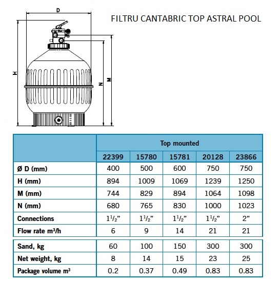Filtru Cantabric Top D500mm cu nisip: