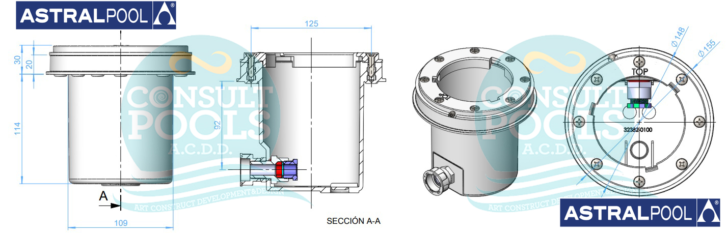 Compatibilitate Mini nisa de incastrare beton pentru proiector cu led cu mini proiectoarele de la Astral Pool 49820, 49822.