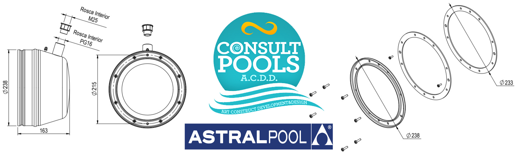 Accesorii obligatorii pentru proiectoarele cu LED standard PAR56 de la Astral Pool Spania