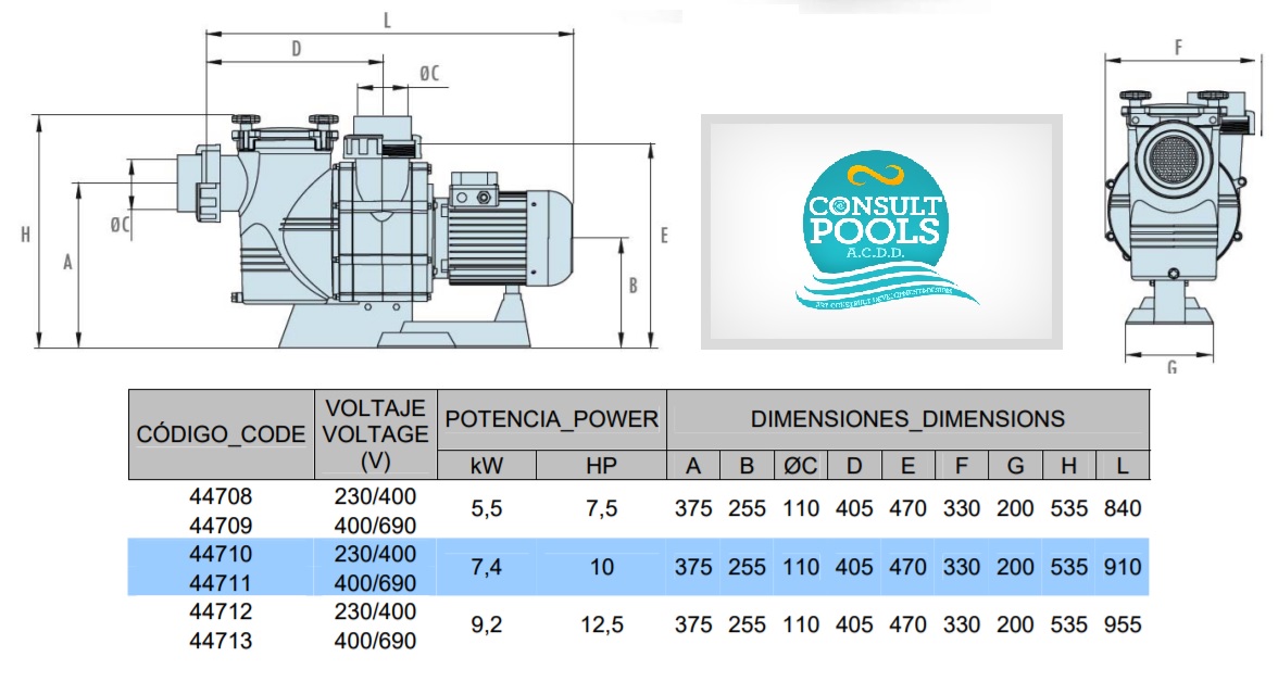 - Motorul pompei este furnizat cu protectie IP55, 50 Hz. ;