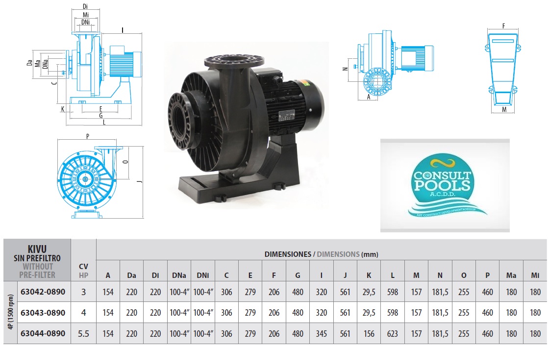 Principalele caracteristici pompa Kivu Astral Pool Spania cod 66048-0890: