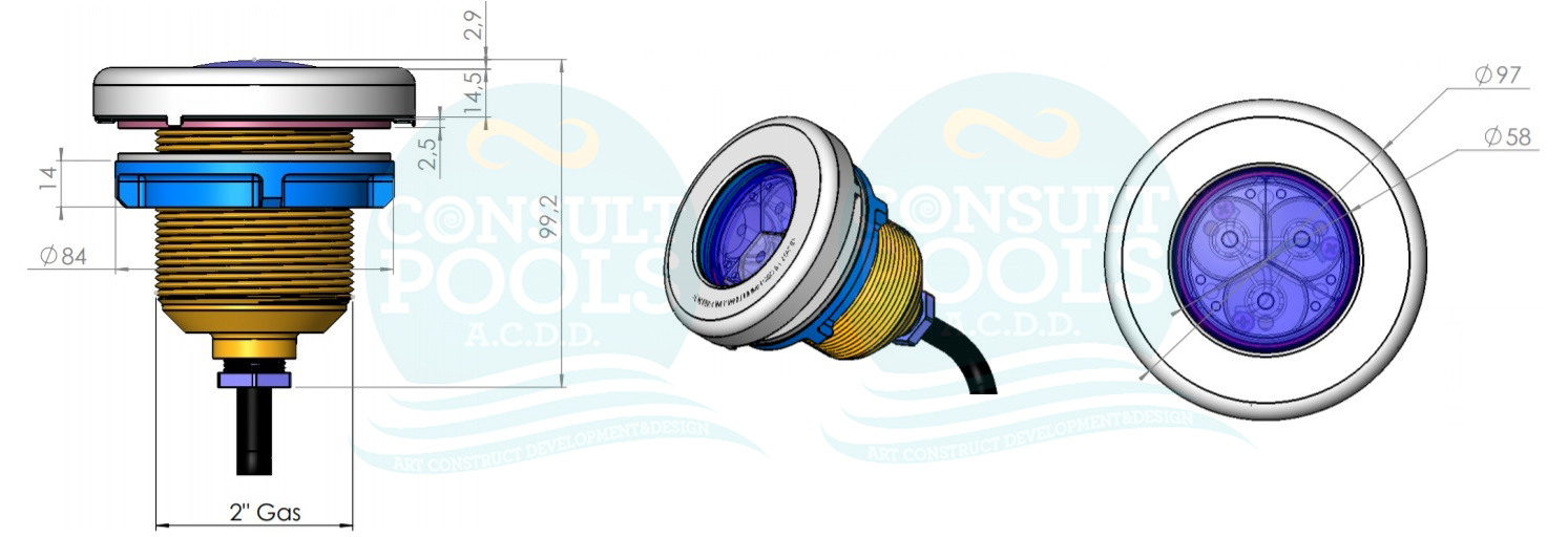 Poate fi instalat cu succes pentru orice tip de piscina prin implementarea in structura de beton a piscinei a unei conducte sau treceri de perete cu filet interior D63 2".