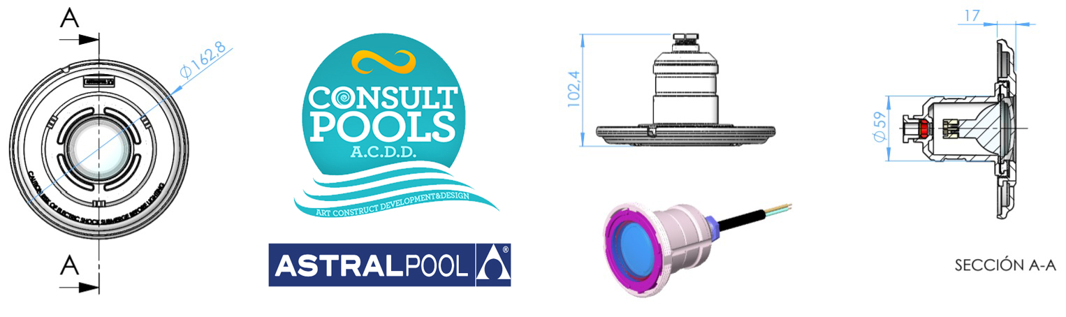 Recomandat a fi utilizabil pentru toate proiectoarele cu mini nisa de incastrare in structura de beton a piscinei.