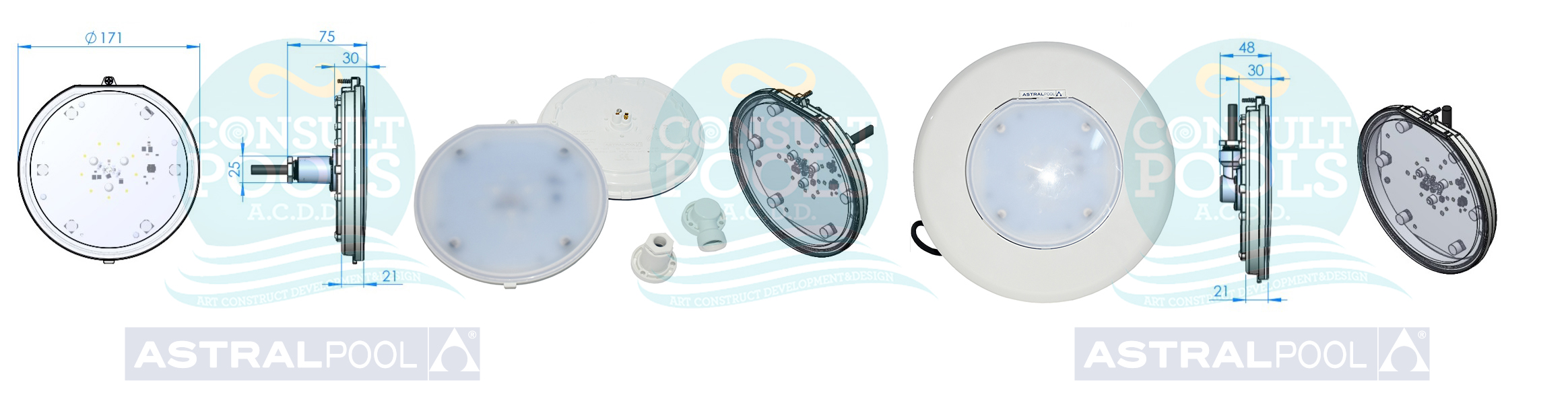 Detalii Proiector piscina LumiPlus Flexi V1, fara nisa ,led alb cald, 14 W, 1485 l, 3000 K, DC, 24VDC AstralPool cod produs 71201WW71209: