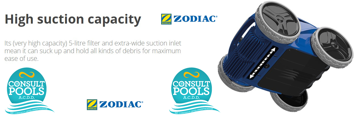 Caracteristic pentru acest tip de robot automat pentru curatare piscina Vortex RV 5300 Zodiac sunt noutatile tehnologice (a. b. c. respectiv d.) cu care inginerii de la Depertamentul de cercetare si dezvoltare tehnologica Zodiac vin in piata.