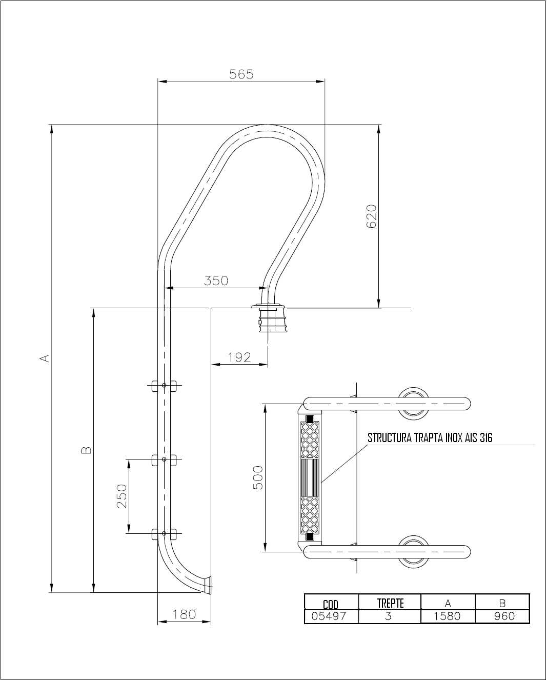 Scara piscina mixta de la Astral Pool 3 trepte folosita pentru piscinele atat cu structura de beton, cu panouri de otel cat si cele cu structura din fibra de sticla.