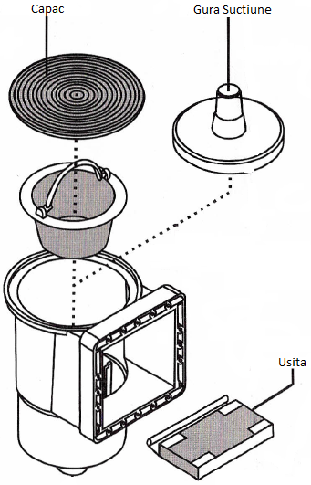 Cosul skimerului fixat prin sistemul clasic baioneta.