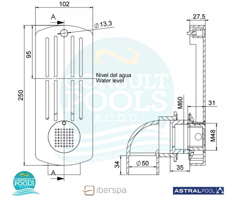 Skimer pentru spa, abs, Ø50 - 1½" AstralPool by Iberspa