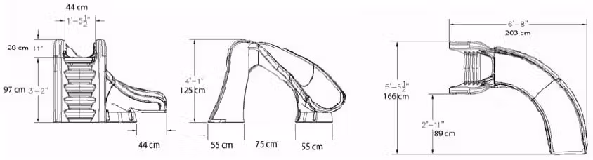 - suprafata toboganului alunecoasa pentru a facilita coborarea cat mai usoara in piscina.